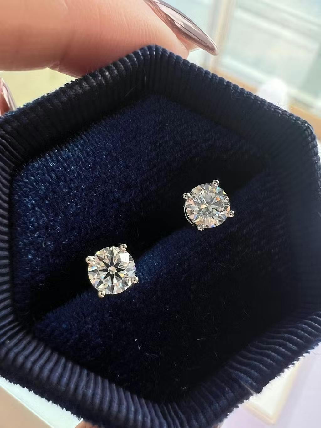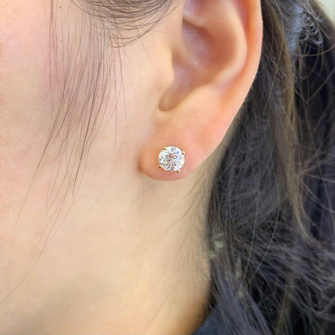 2ctw Perfect 4 prong Round Brillance Lab Grown Diamonds Earstuds (Pair) in 14k White Gold